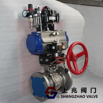 氣動球閥主要由氣動執行器和球閥兩部分組成。氣動執行器由氣源提供動力,將氣動執行器內的活塞機構帶動輸出軸轉動,同時帶動球閥閥芯轉動,實現球閥的開關動作。與氣動切斷閥相比,氣動球閥啟閉動作更快,體積更小,操作更簡單,因此在某些場合下可以取代氣動切斷閥。